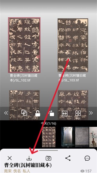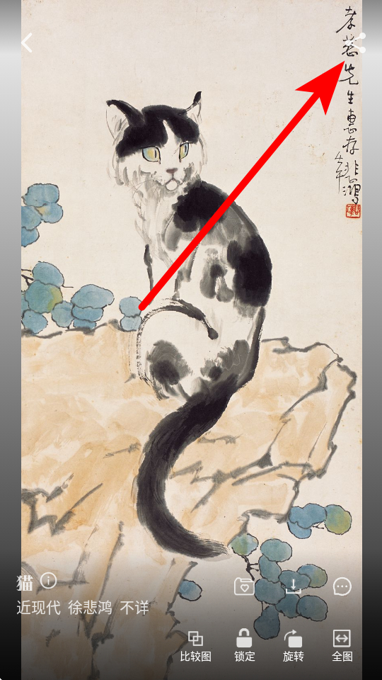 4、在藏品详情页面,点击右上角分享相关图标,选择合适方式完成图片分享。