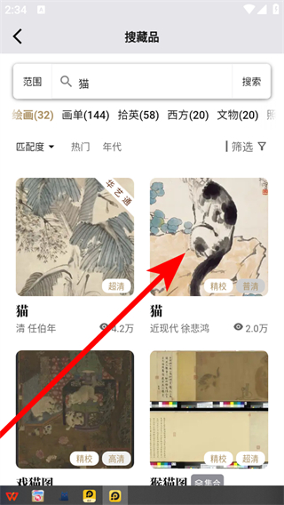 3、在搜藏品结果的页面,点击目标藏品,进入藏品详情的页面。