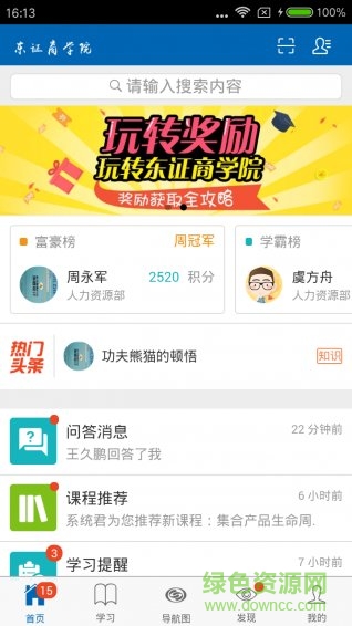 东证商学院app是一款学习教育应用,通过软件你可在线观看视频课件、在线咨询问题,以及参与同事圈帖子、运营活动;为围绕员工的业绩提升解决方案,充分利用移动端优势,引入社交化、游戏化管理、大数据分析与智能反馈手段,从个人能力训练、团队士气与凝聚力的提升、业务管理和执行力内控入手,快速提升企业员工的业务技能和工作效率,高效推进业务流程的执行,进而推动企业业绩提升!