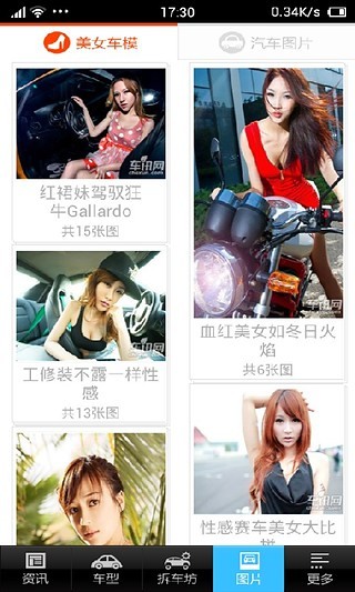 4.图片,包含各类美女汽车图片,集改装车、汽车新闻、趣味、美女车模于一体。