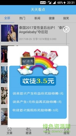 天天看点是什么?天天看点app是一款专门为用户提供手机赚钱功能的软件,每天超多优质的小文章,热门信息播放,用户可以根据自己的需求领取相应的任务,即可获取收益哦,天天赚不停,需要的用户快来绿色资源网下载吧~!