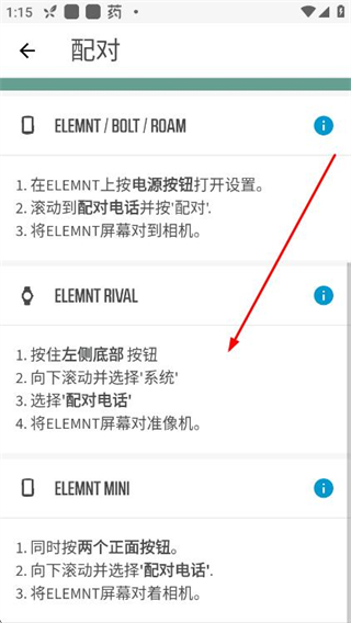 3、选择对应型号的ELEMNT设备,按照页面提示完成设备操作并配对。