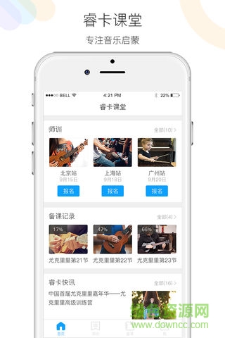 睿卡课堂是什么?睿卡课堂是一款针对青少年儿童打造的音乐类学习软件,乐器学习艺术教学特长开发培养,线上课堂智能学习深受广大用户喜爱。快来绿色资源网下载体验吧!