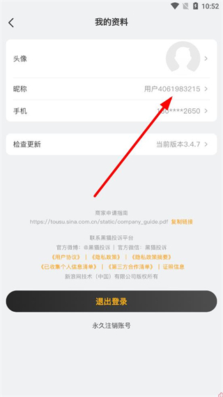 1、进入黑猫投诉app后,点击底部我的选项,进入个人页面。