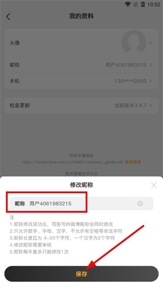 4、在修改昵称弹窗中,输入符合规则的新名称,确认后点击保存,即可完成名称修改。