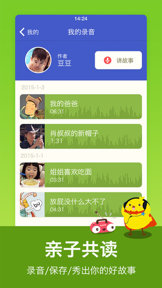 精选发布爸爸妈妈真实讲故事音频,传递亲子共读浓浓暖意;