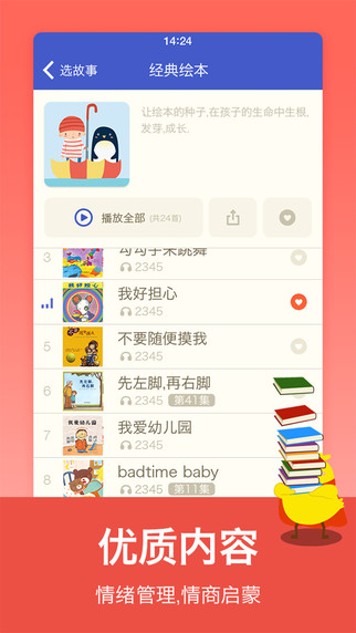 贴心设计一键收藏、离线收听,随时随地感受有爱故事;