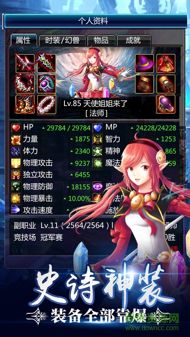 以任务引导角色成长为中心,结合副本、PVP、PVE为辅,与其他网络游戏同样具有装备与等级的改变,并拥有共500多种装备道具。