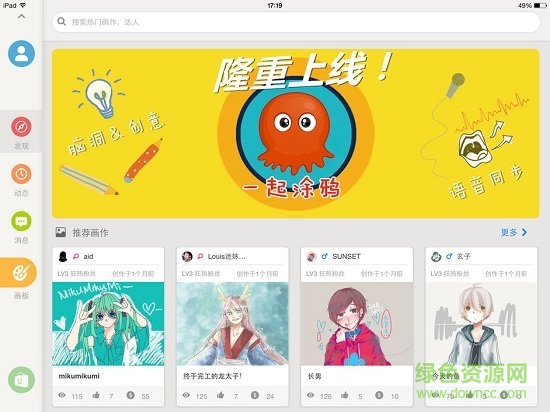一起涂鸦是什么?一起涂鸦app是一款专门为喜欢绘画的用户打造的涂鸦交流平台,超多绘画工具带你创作出自己的喜欢的画作,同时分享给社区的其他用户一起欣赏哦,快来绿色资源网下载分享你的画作吧!