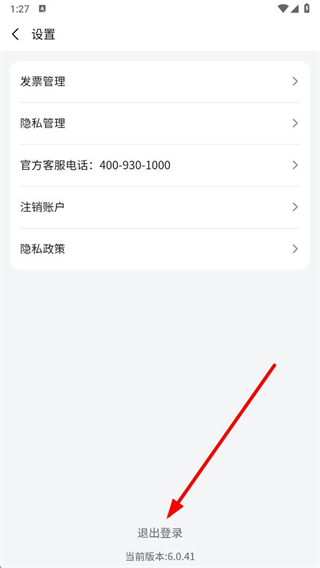 3、在设置页面底部,找到退出登录选项并点击,触发退出账号的确认弹窗。