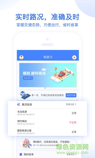 易路行app是专为广大车主提供的一款高速服务软件,使用app用户可以线上缴费,实时查看高速路况,掌握交通状态,省时省力,为出行带来无限便捷,欢迎来绿色资源网下载!