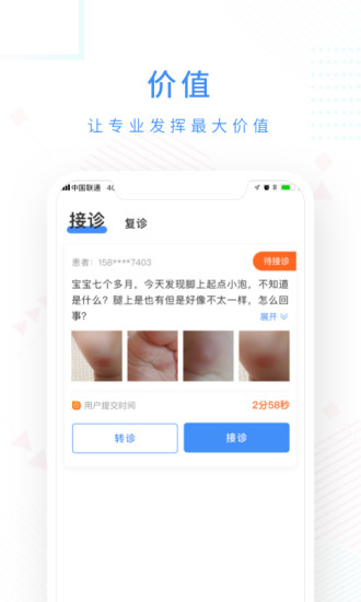 十分好医app是为医生打造的线上接诊服务平台。医生可从十分好医app获取优质新病人,提升患者口碑和个人品牌。您每月花少量精力,就可获得丰厚回报。病人信息的统一管理,使医生可以轻松地积累病人资源。