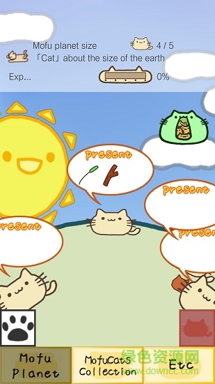 《软软猫咪(Mofu Cats)》是一款日式Q版风格的养成游戏。猫咪生活在软软星球上,而猫咪所需要的食物都可以在星球上拾取,当你把一只猫喂满三种食物后,会“分裂繁殖”出新的猫咪。当软软星球的容量没法容纳更多的猫咪时,就需要为猫咪搬家,让它们移居到星球的内部去。移居一定的猫咪后,星球就会升级,这样能容纳更多的猫咪。而且星球升级后,生长的食物也变得丰富起来。喜爱日式养成游戏的朋友,值得一试。