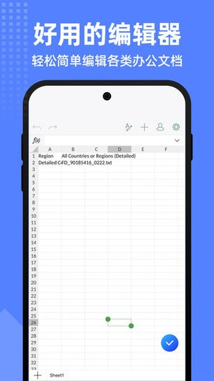您可以将手机里的word、excel、ppt和pdf等文档导入到文档表格编辑,文档表格编辑强大的文件管理功能,让您轻松的管理各种文件、表格和笔记。