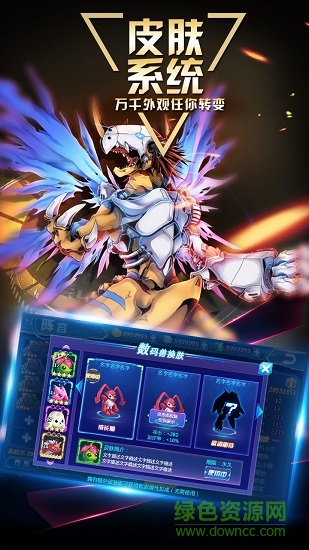 遵循原作,游戏内容高度还原,不仅将大家熟知的如暴龙兽、天女兽、加鲁鲁兽等经典数码宝贝,悉数搬上数码世界大舞台,更有神秘未知的究极体数码宝贝提前解锁,强势登场!刺激你的视觉神经!