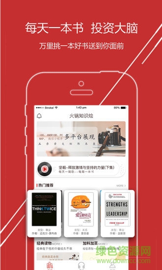 火锅知识烩手机app是一款专注于知识讲解以及知识阅读的手机网站,海量图书在线等待你的阅读,优质的兴趣推荐给你更好的阅读体验,同时还有更多智能讲解为你阐述不一样的深情,需要的用户快来绿色资源网下载吧!