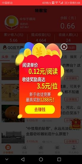 转客宝APP是一款手机兼职软件,网络精品的新闻、情感、搞笑、段子、时尚、星座、财经、历史、美容等,随时随地阅读转发。它最大的赚钱方式就是可以转发文章赚钱,让你一边阅读文章资讯一边分享赚钱。