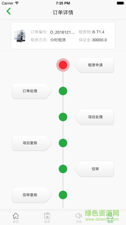 我的订单:个人设备租赁申请情况列式,并可通过客户端实时了解订单审核情况,掌握申请的进度。