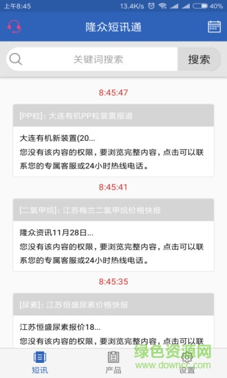 隆众短讯通app是一款专门为隆众石化用户打造的短信推广手机软件,用户可以通过软件了解到最新的信息咨询,每天不定时更新最新的信息,用户可以根据自己的需求进行查询浏览,需要的用户快来绿色资源网下载吧!