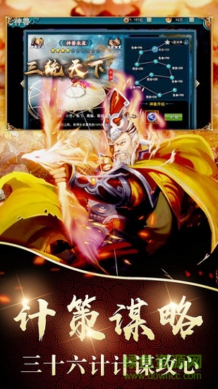 首款挂机类《三统天下》三国卡牌网游,让玩家化身青年主公。 情义热血,兄弟相助,激情军团战, 百余名武将羁绊任意搭配选择,知名武将将乘骑各式特色坐骑,用实力证明属于自己的三国篇章。