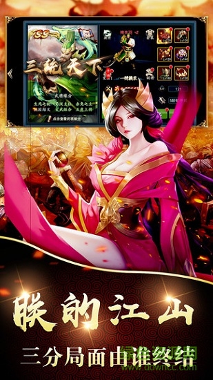 三国名臣武将为你鞍前马后,百万热血将士助你圆梦三国!文治武功做一代三国名将,屯粮草,升科技,建功勋,打造最强铁血兵团。经典版本玩法的手游神作,熟悉的感觉,不一样的完美体验!