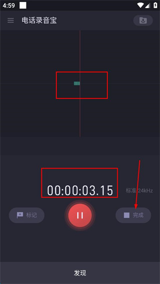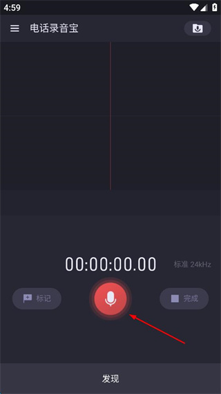 3、返回主界面,点击红色麦克风图标,开始录音。