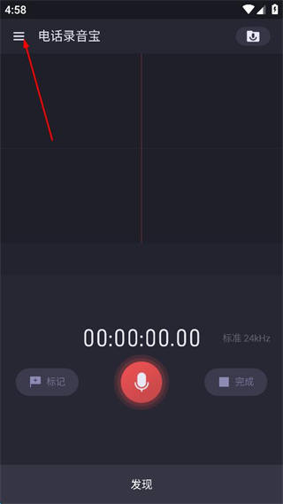 1、打开电话录音宝APP,点击左上角菜单图标,进入更多页面。