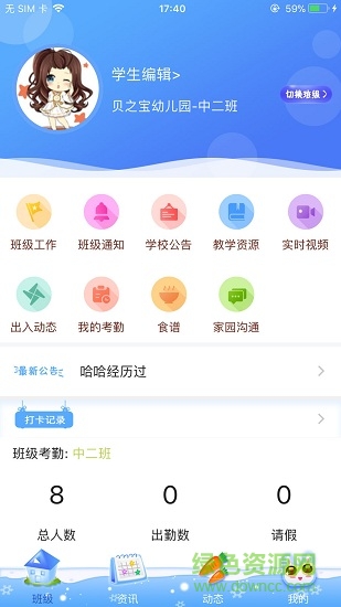 3.能够及时掌握班级的考勤情况,通过校园监控及时掌握孩子的位置。