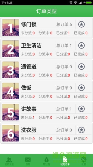 1.我的订单:完成业主的所预约的物业服务的分派,确认。使用手机端完成所有工作。