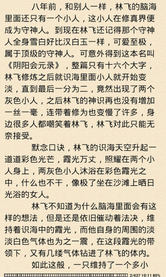一个按键,让你可以随时回到阅读世界当中。文字和图片经过认真排版处理,阅读体验绝佳。夜间模式、仿真翻页效果、字号、亮度、背景颜色均可根据个人习惯调整,总有一款适合你。