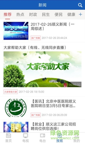 顺广传媒apk是一款专属于顺义地方本地的手机新闻app,最新本市热点信息动态实时发布,支持视频图片文字等多种阅读方式,新闻阅读评论互动生活爆料举报投诉一键搞定,让您轻松知晓本地大小事件。快来绿色资源网下载体验吧!