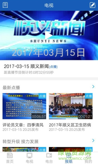 顺义电视节目直播、顺义广播电台(FM92.9)直播、电视节目点播、电台节目点播、顺义时讯在线阅读,顺义资讯、积分商城,电视视,听广播,看报纸,看新闻,找工作,看医讯,得福利,尽在顺广传媒APP