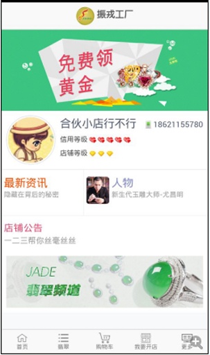 戎店是一款帮助卖家在手机上开店的软件。国内首款集黄金、翡翠、钻石、彩宝、名表、名包一体销售的手机购物商城,任何人通过手机号码即可开通自己的店铺,并通过一键分享到SNS平台来宣传自己的店铺并促成交易。降低了开店的门槛和复杂手续,且不收任何费用。