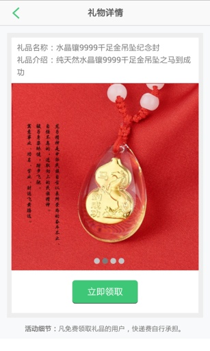 戎店新注册用户及新开店用户可以免费领取纯天然水晶镶足金吊坠一个,需自付邮费。