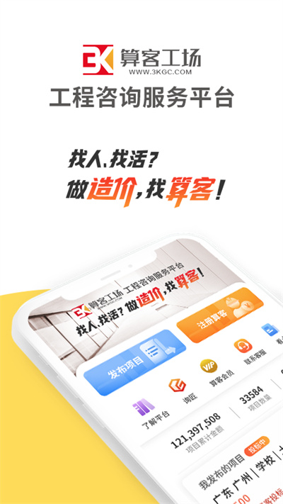 算客工场app是一款免费的工程计价交易软件。通过这款软件可以快速找到合适的工程计价算客。真正实现了工程计价共享赚钱模式。主要服务于工程师用户使用!用户可以随时在线发布项目计划和预算,并迅速找到专业服务提供商,助力办公更加高效。欢迎大家来这里点击下载。