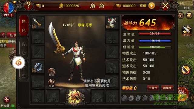 战力提升:游戏中战胜怪物可能获得装备以及材料,在锻造界面对装备进行强化可以提升战力。对装备的部位镶嵌宝石也可以提升战力,宝石等级越高提升战力越多。主线任务可以获得护国神器对玩家战力进行加持,同时护国神器也可以进阶。获得符石材料可以对装备进行铭刻,增加角色不同属性,同时获得战力加成。同时,参与活动以及挑战BOSS可能获得高级装备或者材料,高级装备可以在神兵特戒界面进行升级,获得战力的大幅度提升。