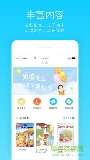 美优少儿英语安卓版是一款非常好用的幼儿英语学习手机app,包含有学校课本的同步教材和绘本,用户可以在线学习,进行教材点读,还可以进行视频配音,欢迎有需要的朋友到绿色资源网下载体验!