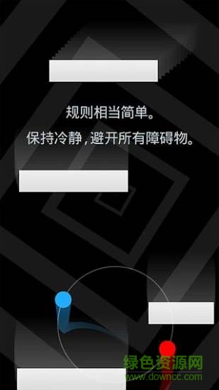 3.至于操作,玩家需要将自己的拇指放在屏幕的左侧来控制由这两个斑点共同所在的圆环的旋转,而右手指则是控制另一个方向的旋转,所以,要想成功的躲避那些障碍物,必须做到双手齐下。