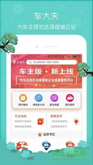 津城车大夫APP为车主提供快乐优质便捷的汽车生活,并且每一台机动车建立了由投入到报废全过程的健康档案系统,便于其车辆检测、维护与维修,实现阳光下消费!快来绿色资源网下载吧。
