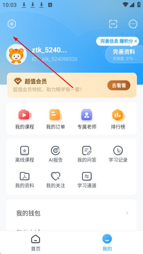 2、在我的页面,点击左上角的设置图标。