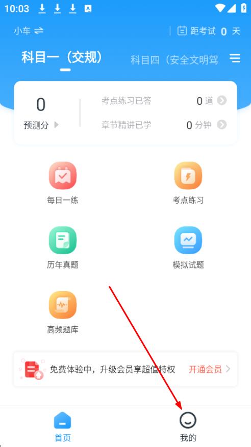 1、打开驾考准题库APP,点击底部导航栏中的我的。