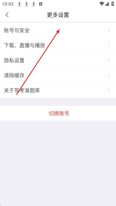 3、进入设置页面后,点击账号与安全选项。