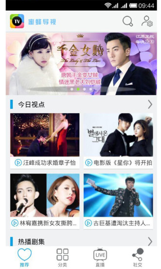 2、直播+点播:电视直播和点播资源荟萃,只要登录蜜蜂导视客户端,即可观看互联网最热门电视节目的直播、点播视频。