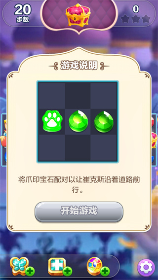 6、随着步数的进行,消除的爪印宝石越多,崔克斯走得也就越远,在20步之内达到终点即可过关;