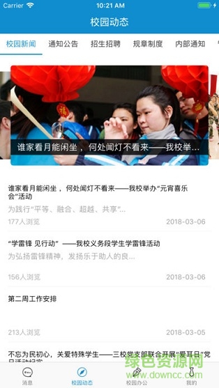 可查看校园新闻、通知公告、招生招聘信息及作息时间,及时了解校园动态。