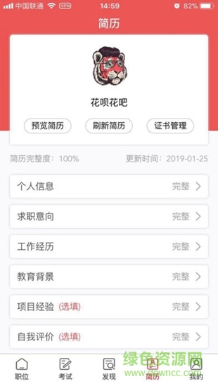 简历:专属行业求职信息