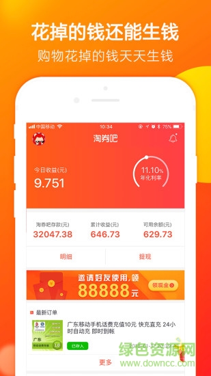 淘券吧能帮你把在淘宝、京东花掉的钱存起来,像余额宝一样赚利息!
