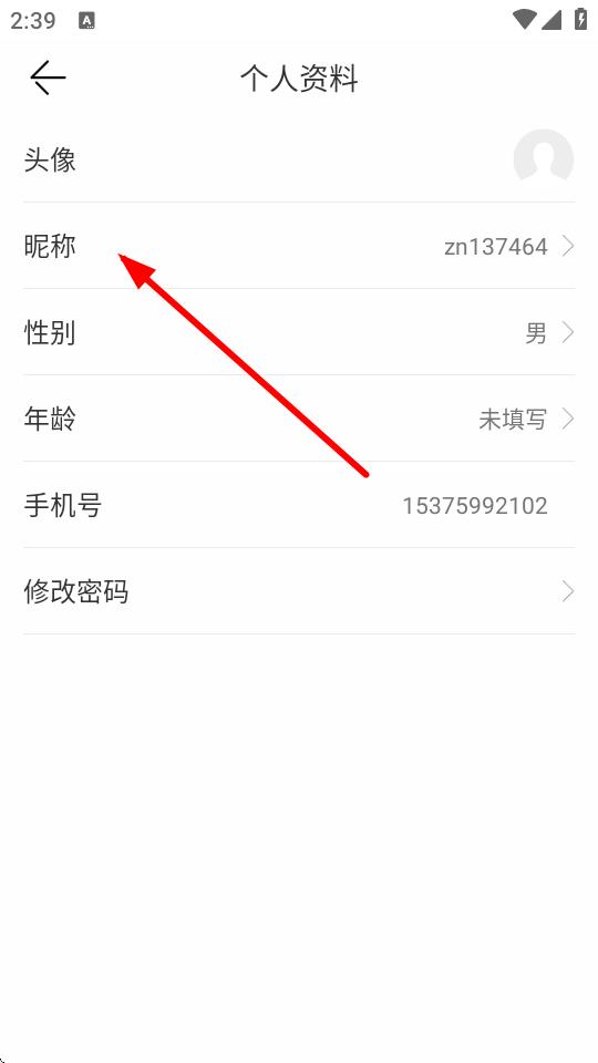 3、在个人资料页面里,点击昵称选项,进入修改昵称页面。