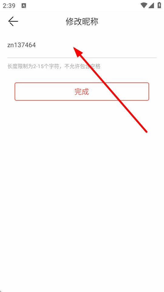 4、在修改昵称页面,删除原昵称内容,输入想要设置的新昵称,输入完成后点击完成按钮,即可成功修改名字。