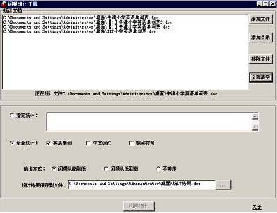 词频统计工具,可以统计一批word文档(.doc;.docx)、网页文件(.htm;.html)或文本文件(.txt)中所有中英文单词出现的总次数,或分别在各文件中出现的频率。 支持批量统计文本文档中中英文单词出现的频率和次数,并以excel或者word表格的形式直观的展现出来,统计结果可以按出现次数排序输出为Excel表格或Word表格文档。非常的好用,适合一些办公室文员使用。